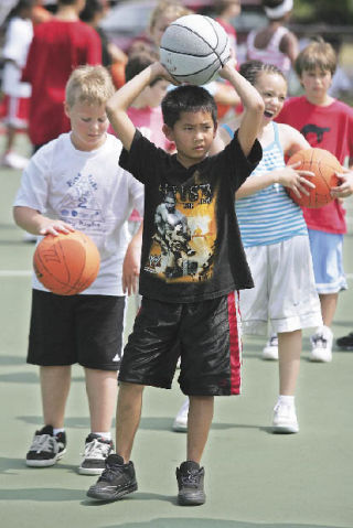 Kids out on the basketball courts at Liberty Park this week laughing, yelling and shooting hoops were learning more than just how to play basketball. They were learning how to live a healthier life.