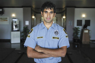 Mornings, Tanuj Soni is a student at Highline Community College. Afternoons, he is an officer for Renton Police Department. He works in Staff Services and Auxiliary Services, the formal name for the Renton Municipal Jail.
