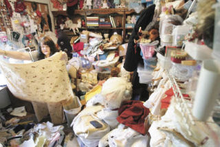 Things like old clothes bought 40 pounds ago, fabrics, books, prints from the art gallery and framing store she ran for 25 years. And thousands of Madame Alexander dolls.