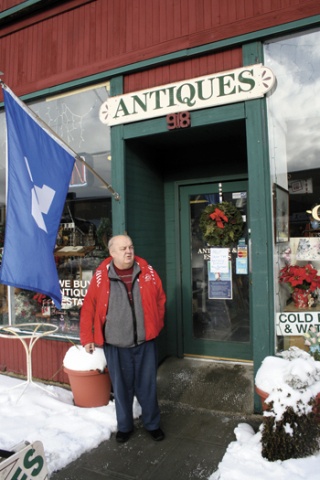 Rod Stewart stands outside his antique shop on South Third Street Monday morning