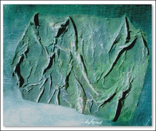 Wend’s Carco art is an abstract series of textural works using cloth, fibers, paper, plastic and assorted salvaged materials and objects posted on canvas, wood panels or masonite. He also used acrylics.