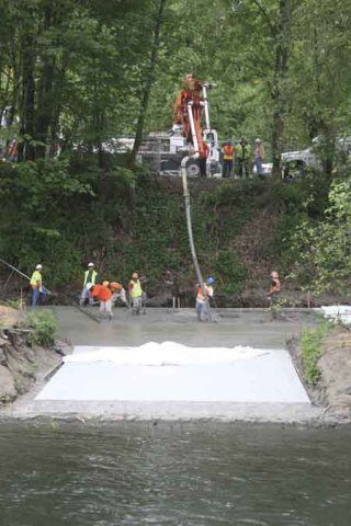 Paving of the access landing to the Cedar River near Cedar River Park that Seattle Public Utilities (SPU) will use to reach a fish weir that traps returning sockeye salmon was completed Tuesday.