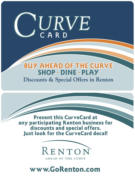 We will be promoting use of the free “CurveCard” in City and Chamber publications and in the Renton Reporter. CurveCards will be attached to the front page of the June 26 edition of the Renton Reporter, which is distributed to 31,000 homes in the Renton area. Special “Shop Renton” advertisements will run in the Renton Reporter for several weeks. Additional CurveCards will be distributed through City and Chamber events, including Renton River Days, at Renton hotels and to thousands of employees who work in Renton. Additionally, the more than 25,000 anticipated visitors to Seahawks Training Camp, which starts Aug. 1, will receive an electronic version of the CurveCard and promotion of opportunities to shop, dine and play in Renton.