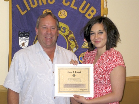 The certificate was presented by club President Roberta Logue to the owner, Michael Servis, and his manager, Tara Andrews, both guests of the club at the recent installation of club officers.
