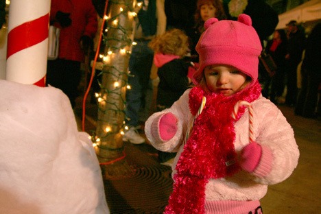 Families christened their winter hats and gloves at the downtown holiday tree lighting event Saturday.