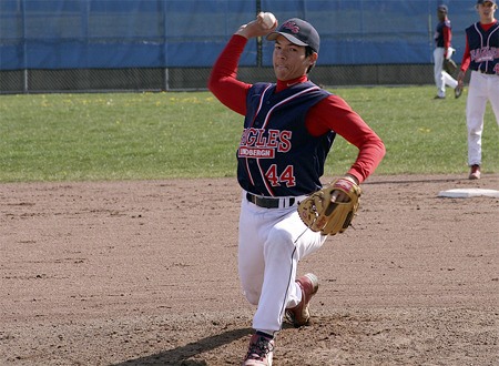 Lindbergh's Tommy Kawamura throws a pitch against Hazen April 14.