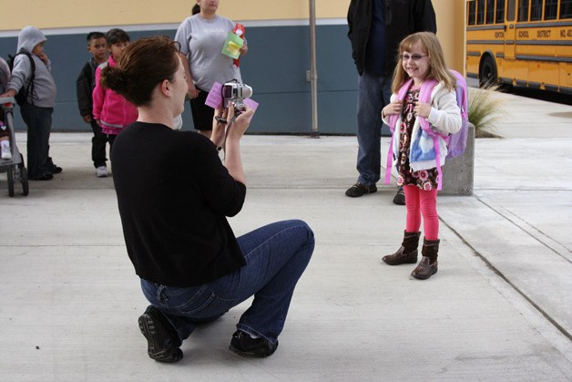 On opening day parents took pictures of their kid’s first day of school, while buses rolled through the parking lots, dropping off a few Honey Dew students.
