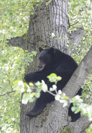 A black bear spent part of mid-day Monday roaming through the Highlands and seeking refuge in a tree before it was safely captured and taken to the Cascades.