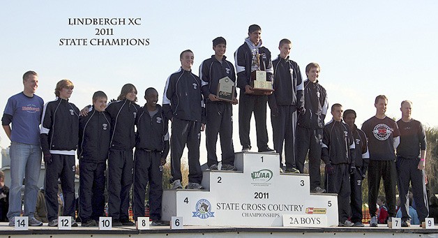 The Lindbergh boys cross-country team won the 2A state title by one point Nov. 5.