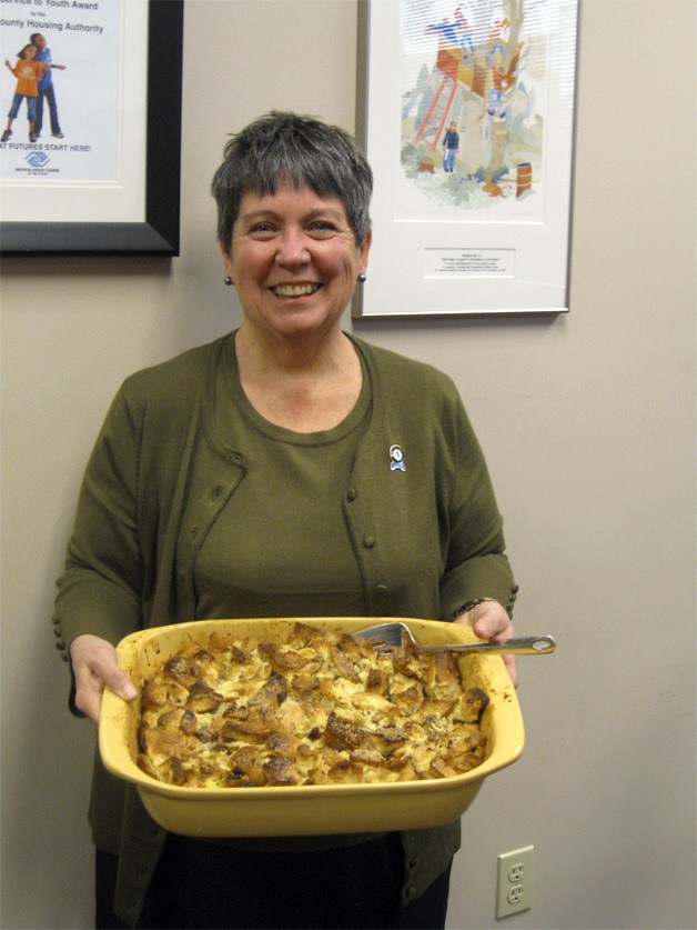 Before it’s even visible the scent of cinnamon and butter wafts through a King County Housing Authority conference room in Tukwila. Evoking the feeling of autumn and warm, yummy goodness this is the aroma of Pat Porter’s bread pudding.