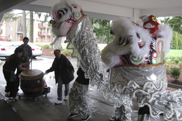 The Mak Fai Washington Kung Fu Club performs a lion dance in the Greenwood Memorial Park porte-cochere Sunday as part of the park’s Ching Ming festival honoring deceased loved ones. The festival drew several hundred people.
