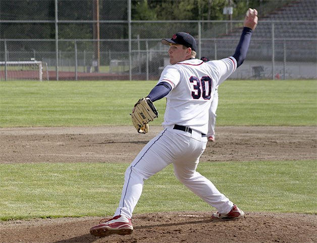 Lindbergh's Matt Stuart pitches against Fife in the West Central District tournament.