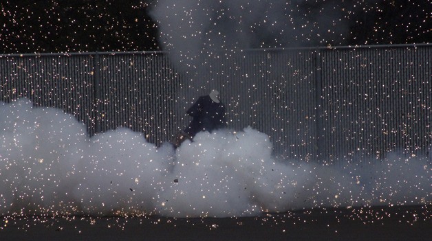 Little was left of the dummy that first lost a hand, then in the demonstration’s finale was blown up by an illegal firework attached to his ankle.