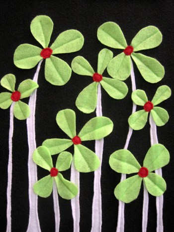 Clymer is currently working with felt, which she does free-form; her creations are always one-of-a-kind. She will provide felt embellishments and decorations for any attendees who bring an extra t-shirt, skirt, jeans, jacket or similar item for a minimum fee.