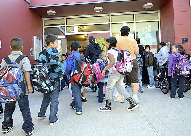 Backpack in tow, hand in hand with a parent, some students made their way to classes today for the first time ever. They filed out of school buses, posed for pictures in front of parents and lined up to enter classrooms. About 14,700 students, in addition to 120 new teachers, headed back to school in Renton Tuesday.