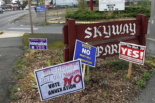 Signs dominated the thoroughfares of West Hill that this week voted not to annex to Renton.