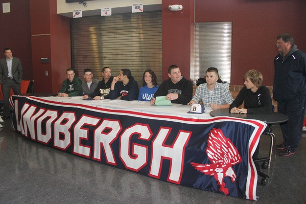 Eight of Lindbergh High School’s student athletes signed their college letters of intent Thursday during a small ceremony in the school commons after school.