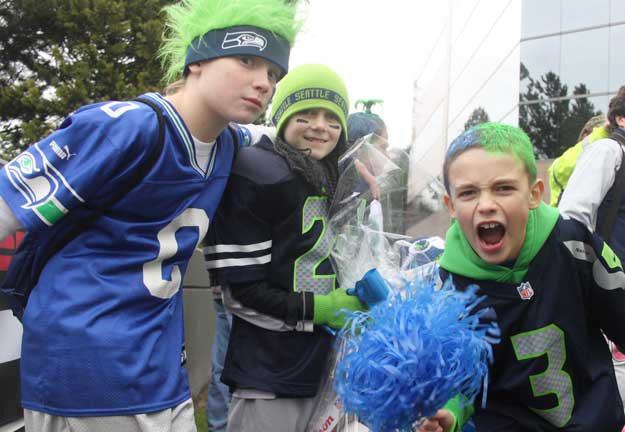 Hundreds of men, women, boys, girls, dogs and even cats dressed in their blue and green finest and headed down to City Hall Friday to cheer the Seattle Seahawks on to Saturday’s playoff game against the New Orleans Saints.