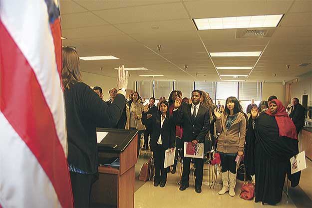 New citizens take the Oath of Allegiance Tuesday at King County elections.