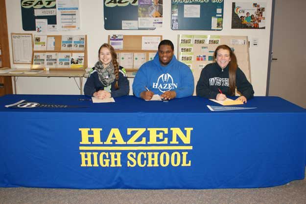 Four Hazen High School students athletes this week officially committed to continuing their athletic careers in college.