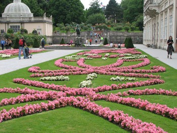 Blame the gardens and not Julie Andrews for inspiring our garden tour group to line up on the same steps of this castle garden where Maria and the children sang “Doe a Deer” in the Sound of Music movie. Suddenly we were belting out the Do-Re- Me tune while posing for a group photo, surrounded by the beautiful Baroque style Mirabel Gardens. Our unrehearsed performance must have sounded pretty good as we did get a few hand claps from a confused Japanese tourist – proving once again that music and gardens are the universal language of friendship.