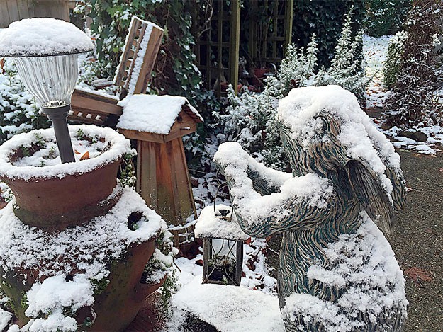 This week’s weather photo comes to us from Gordon Stecklenburg, who grabbed this shot of last week’s minor snowfall in his backyard.