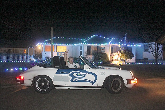 Along with his Hawk-themed home, Klink also has a 1978 Porsche 911 Targa that has been decorated with giant, vinyl Seahawks stickers. He takes the car out on game day and to Seahawks rallies around the region and lets folks pose with the car. Saturday, for example, he and the car will be in Kirkland.