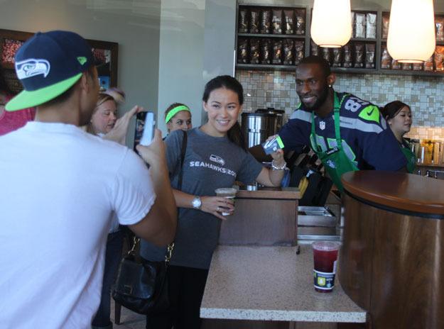 Seahawks wide receiver Ricardo Lockette spent about an hour on Tuesday working at the Starbucks on North 44th Street in Kennydale.