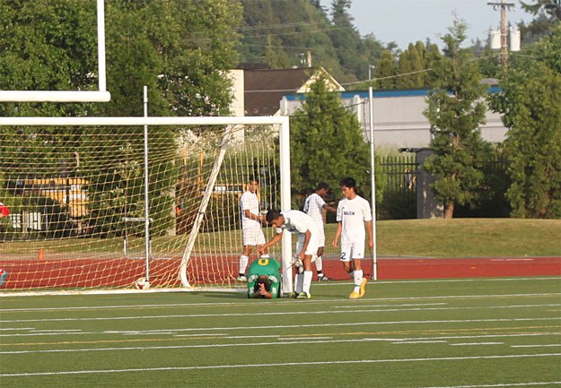 Teammates console Hazen goalie Luis Rodriguez after the winning goal.