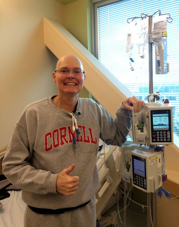 In late January she had a “pretty successful” transplant of her own stem cells but she didn’t go into remission as about 10 percent of the multiple myeloma remained. More testing would determine whether she could make it to the next transplant.