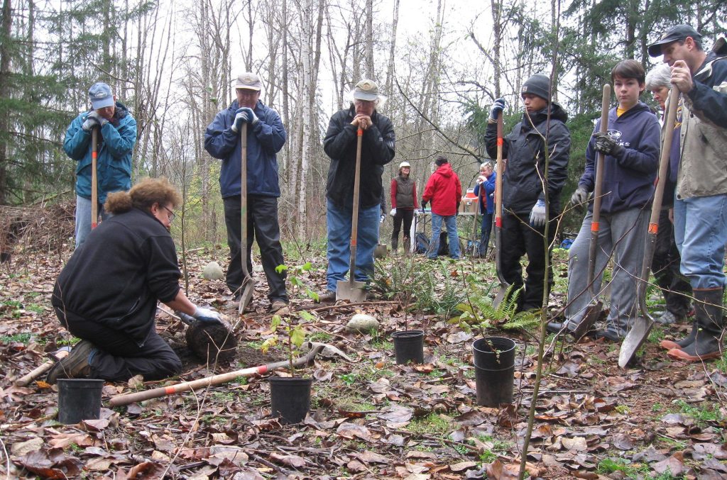 More than a dozen volunteers of all ages gathered Nov. 19 at the Cedar Grove Natural Area, just outside the Renton city limits, to plant trees and other greenery.