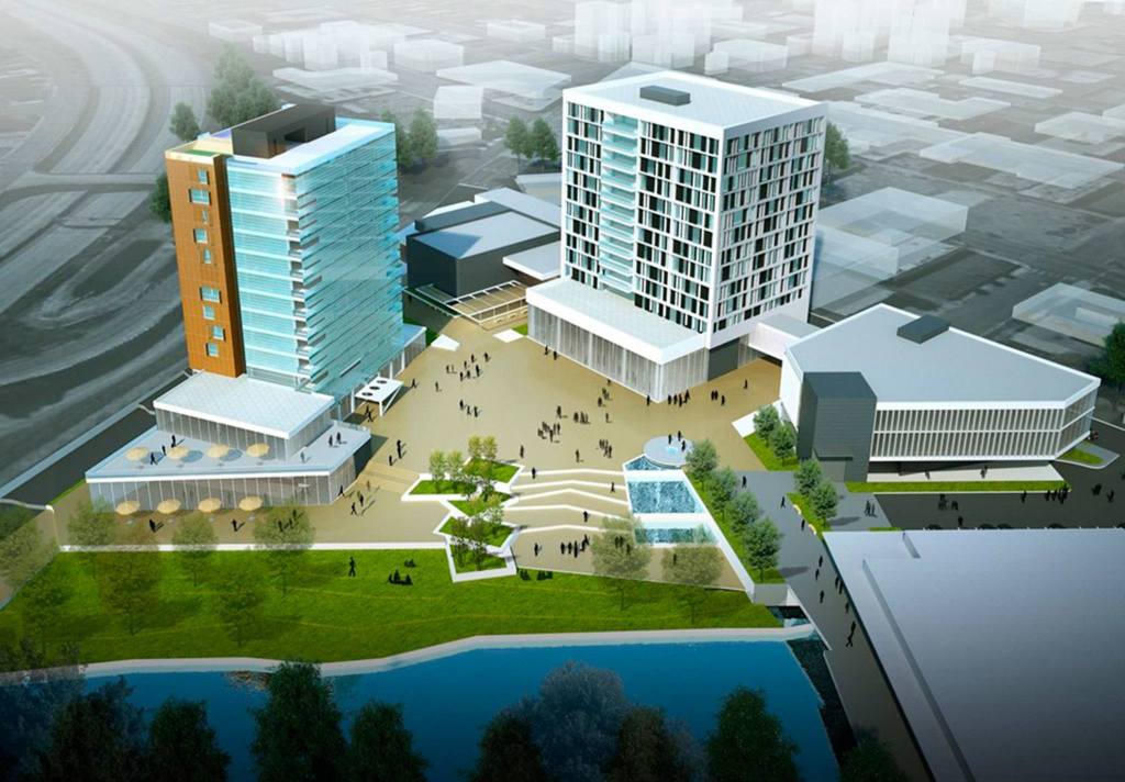 Also included in the plans are a public meeting space, a gymnasium/theater, retail shops, a parking garage and a restaurant with river views.