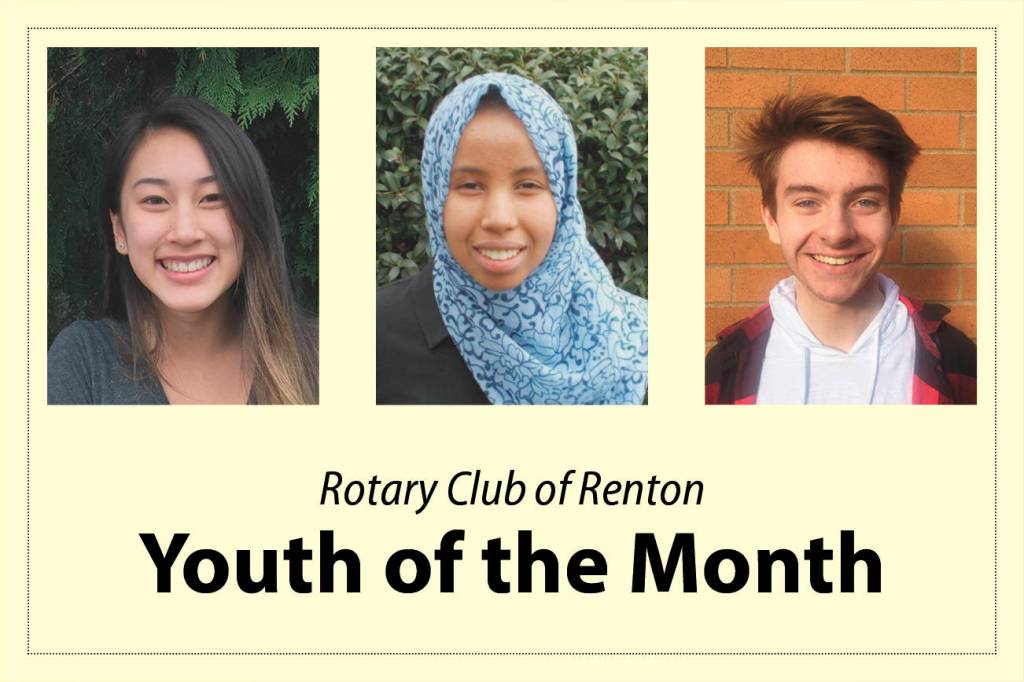 Rotary members recognize three Renton School District high school students each month as Youth of the Month.