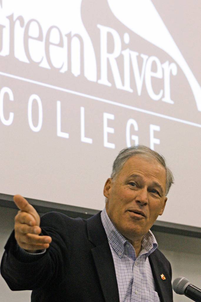 Washington state’s future is on the line, said Gov. Jay Inslee — he grew up here, and it’s personal, he told a room bursting with students, staff and teachers at the Lindbloom Student Union Building on the Auburn campus Oct. 12.