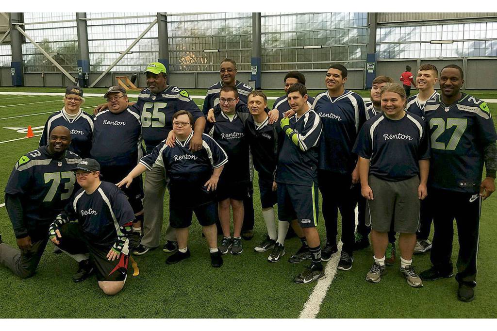 Members of the Special Olympic Flag Football team trained with current and former Seahawks in October at the VMAC.