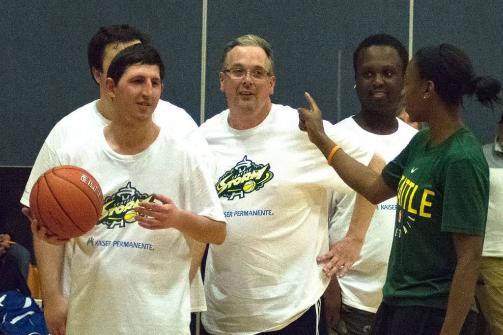The Seattle Storm Basketball team came to the Renton Community Center on March 27 to practice with the Renton Special Olympic athletes.