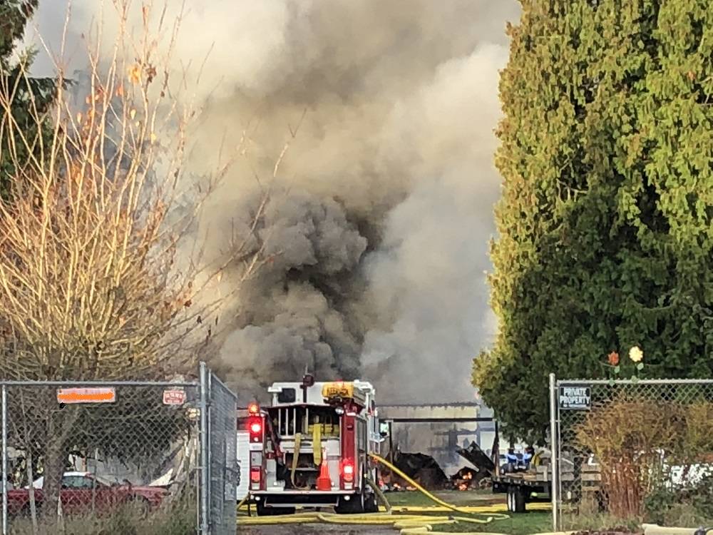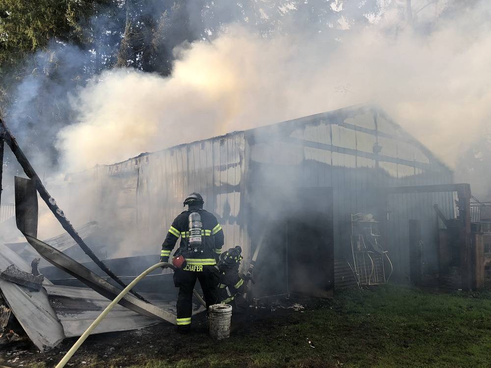 Renton Regional Fire Authority and Puget Sound Regional Fire Authority found the barn fully enguled when arriving. The fire was reported at 7:39 a.m., and firefighters could see the smoke column from a half mile away. The fire occured in Kent, 12900 block of Southeast 203 Place.