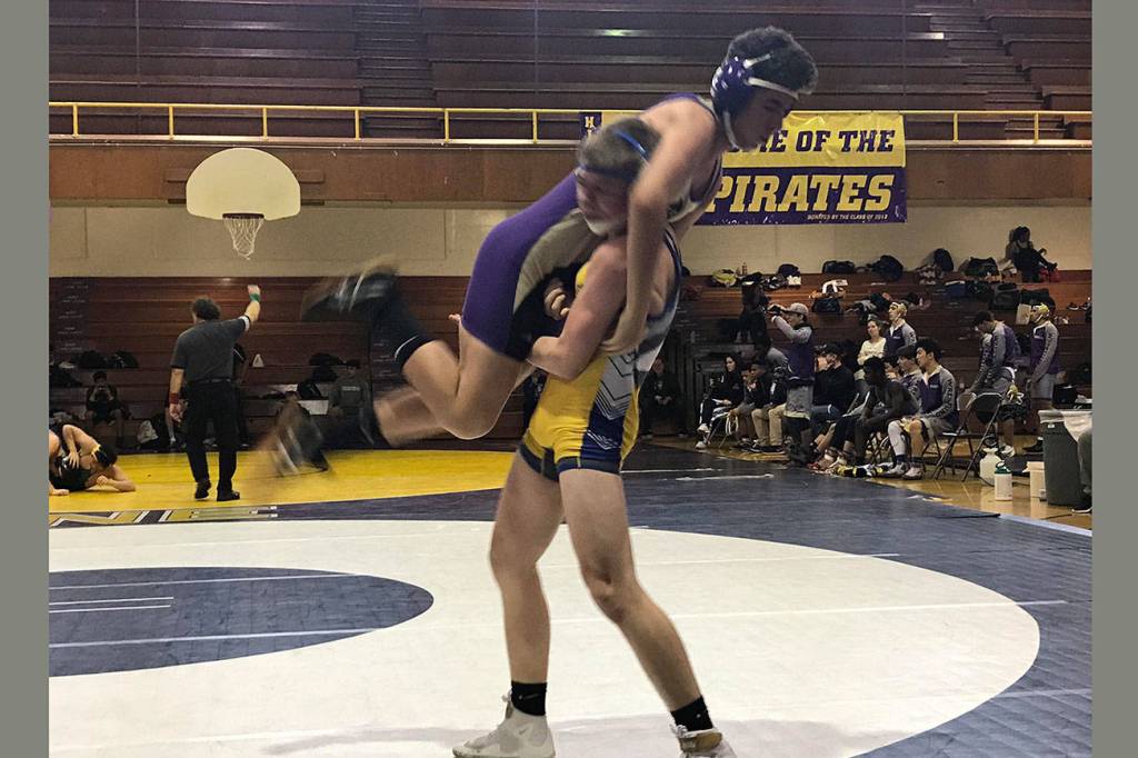 Conor McBride scores a takedown on his Highline opponent. Courtesy photo