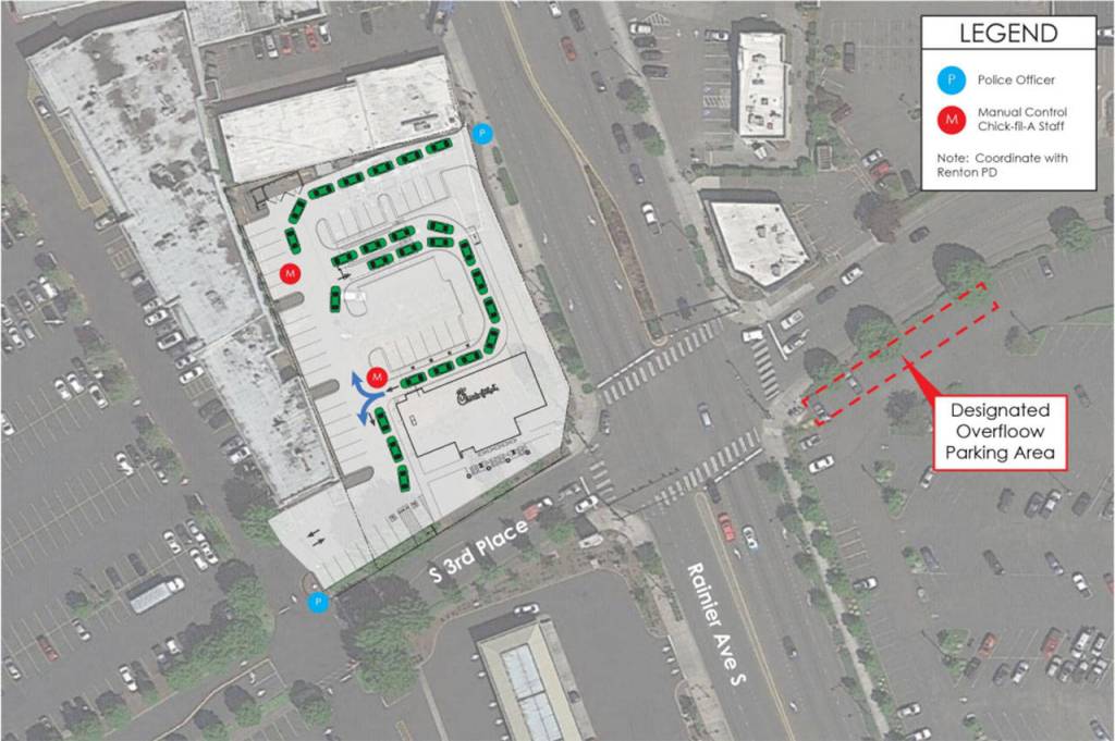 Renton police indicated they would monitor the traffic impacts to ensure safety to the public and determine how many officers would be needed to direct vehicles, according to the advisory notes in the application documents.