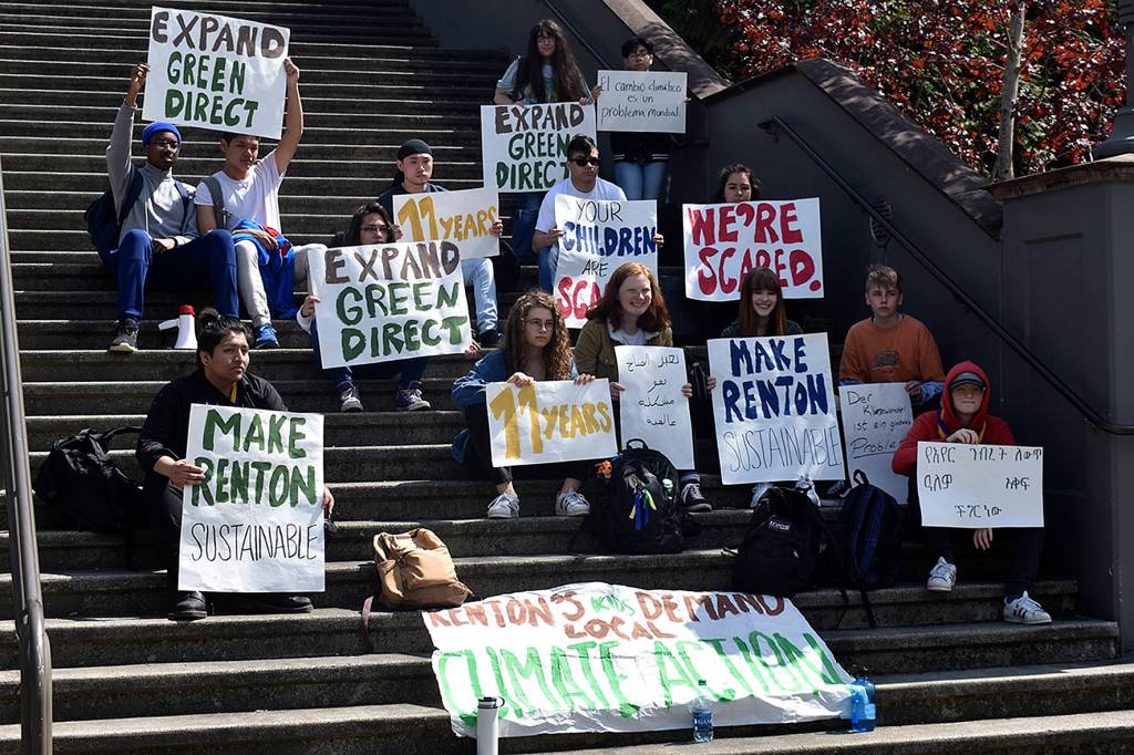 Four of the students had attended the climate strike March 15 in Seattle, including sophomore AJ Rose. Rose said they wanted to organize something local for students in Renton who didn’t make it to that event.