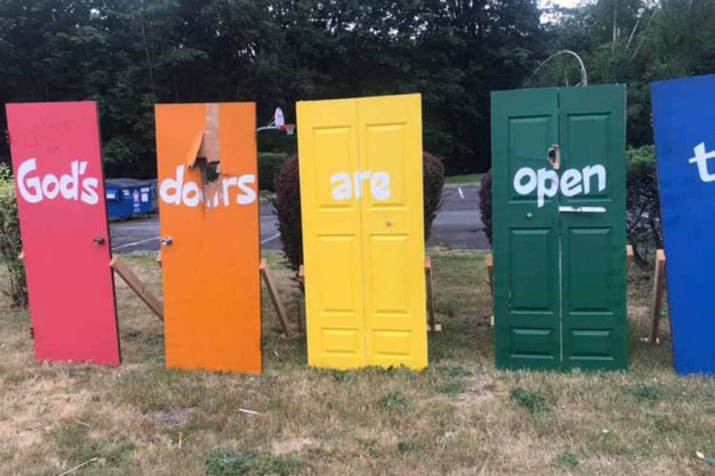 At 2:30 a.m., June 19 a person or group of people used explosive devices to damage the doors, that read “God’s doors are open to all,” located at United Christian Church in Renton. It’s also likely those involved wrote “Leviticus 20:13” on one of the doors. This incident prompted the investigation.