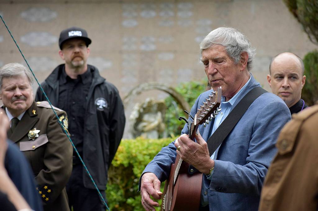 Before the final playing of the bagpipes to conclude the service, Dick Foley and Terry Lauber, of The Brothers Four, performed “Wayfaring Stranger”: