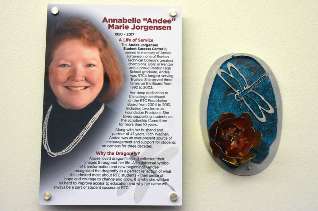 Nov. 5 was election day, but it was also the birthday of an important woman in the Renton Technical College (RTC) community that passed away two years ago. Her work with the RTC and her passion for students lives on in the newly named Andee Jorgensen Student Success Center.