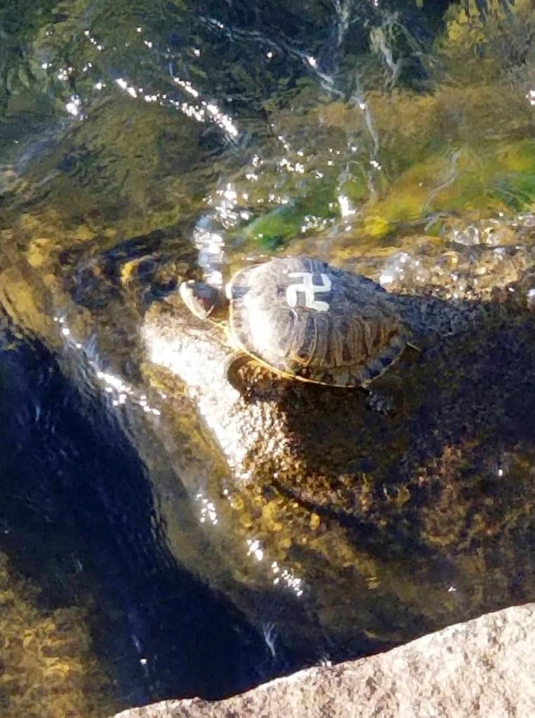 Turtles tagged with bright swastikas were spotted at Gene Coulon Memorial Park Beach on Tuesday. Courtesy photo Mindy Doty.
