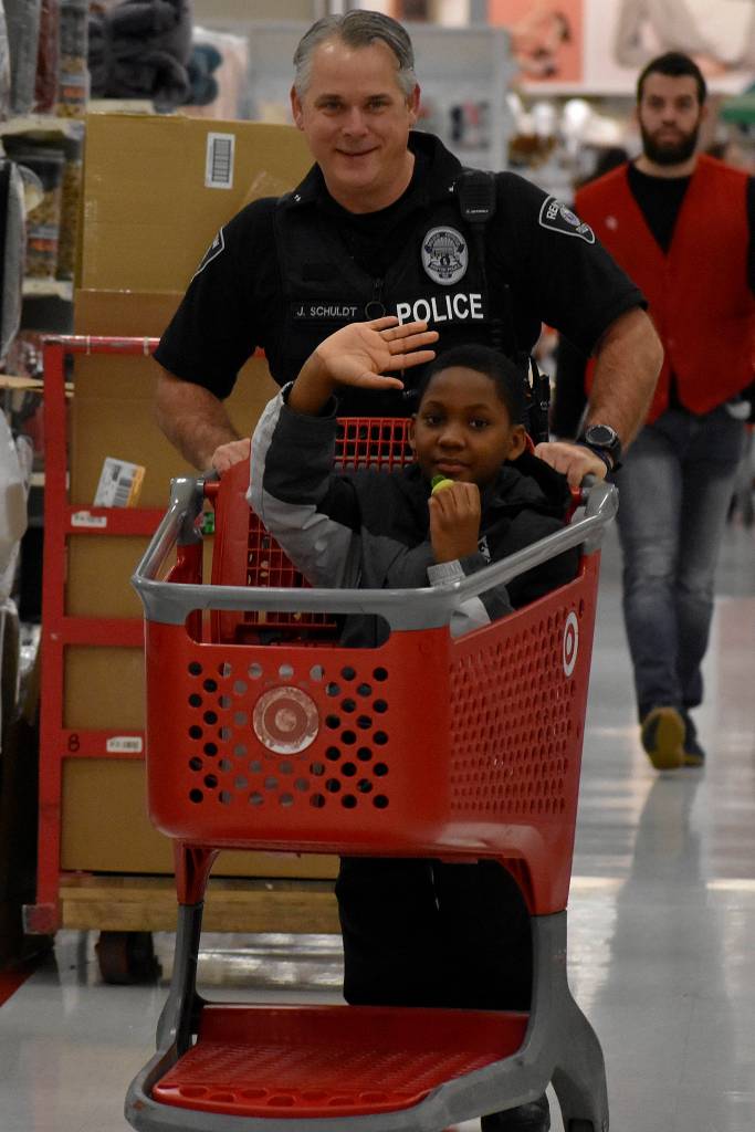 The large police presence at The Landing Target was no crime response, but in fact officers and school students shopping for nail polish, silverware, socks, toys and more for Renton families. On Saturday, Dec. 14, 15 students were paired with Renton Police Department officers who volunteered their mornings to each kid’s family wish list at the 2019 Shop with a Cop.