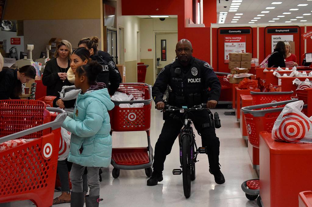 This year 45 folks volunteered, including police and Target staff, to make Christmas wishes come true. Other sponsors included Safeway, Kiwanis Club, Walmart, Torero’s, Renton Coil Spring, QFC, Applebee’s, Starbucks and the Renton Police Athletic League.