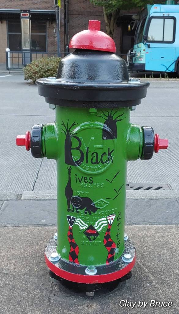 Artist, Educator and Renton resident Bruce McIntyre is featured for his work on a fire hydrant in downtown Renton, part of the fire hydrant art project for the South Renton Neighborhood. McIntyre worked with his son Vaughn to create Black Lives Matter inspired hydrant art.