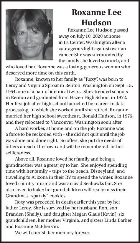 travelling to Arizona in their RV to spend the winter. Roxanne