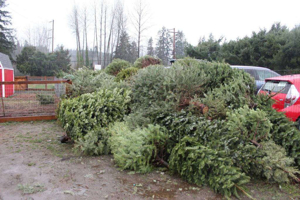 Stacks of donated Christmas trees wait to be eaten by the Sanctuary’s goats, sheep and any other animals who want a nibble. Bailey Jo Josie/Sound Publishing