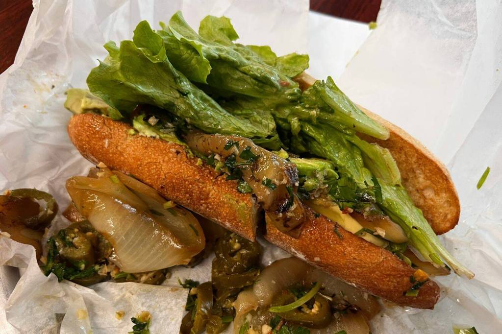 I ordered the El Verde sandwich, a vegetable sandwich featuring avocados and their homemade garlic tapenade.